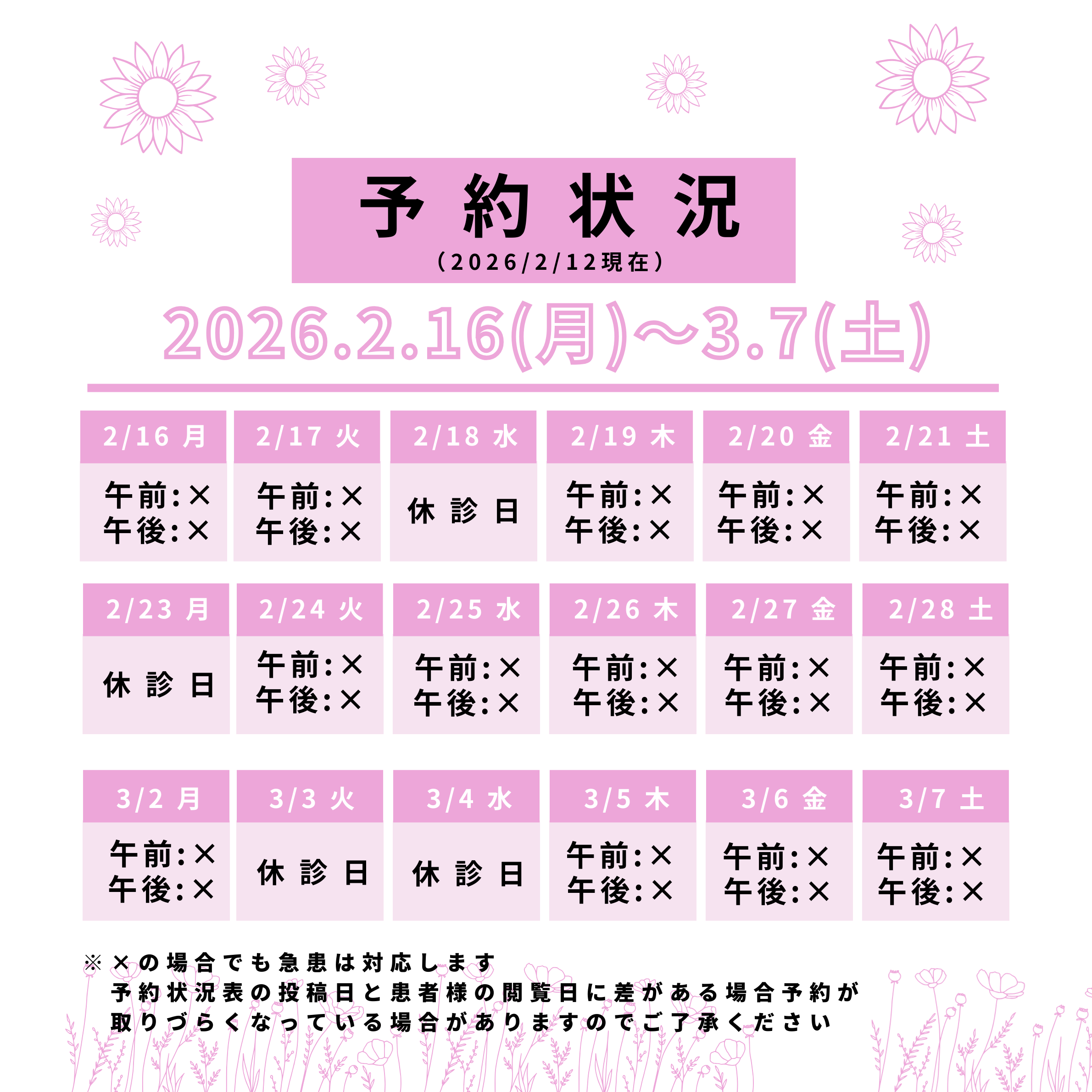 ■混雑時間帯 平日/午後、夕方土日祝/午前、午後 ■休診日 水、祝日 ※診療日が祝日の場合は、水曜日が振替日で診療いたします。 ※日曜は自由診療のみで完全予約制(月1回)です。毎月診療日が異なります。